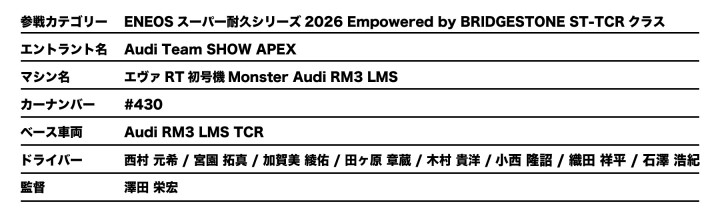 参戦チーム、車両は決まり次第発表させていただきます。